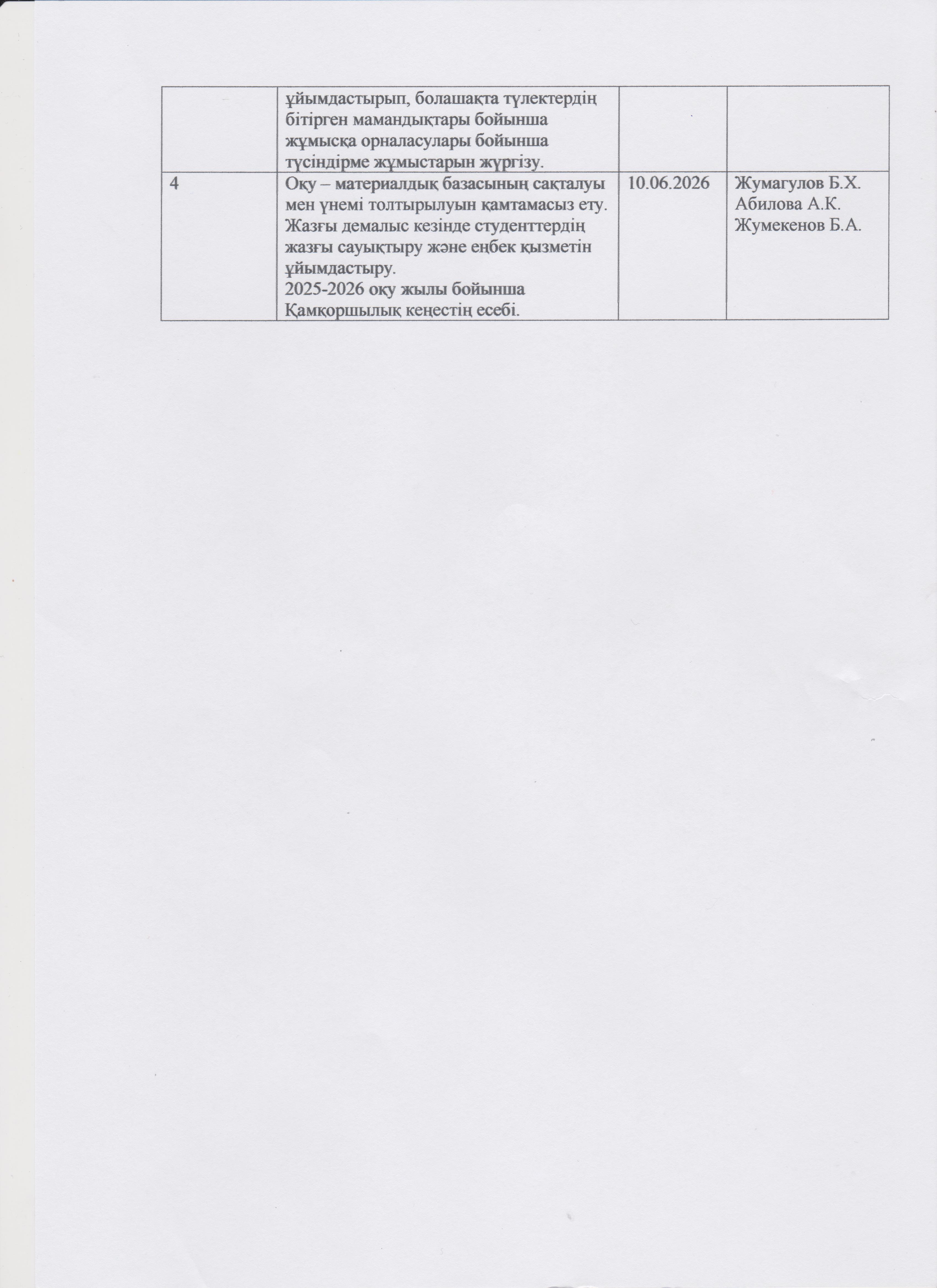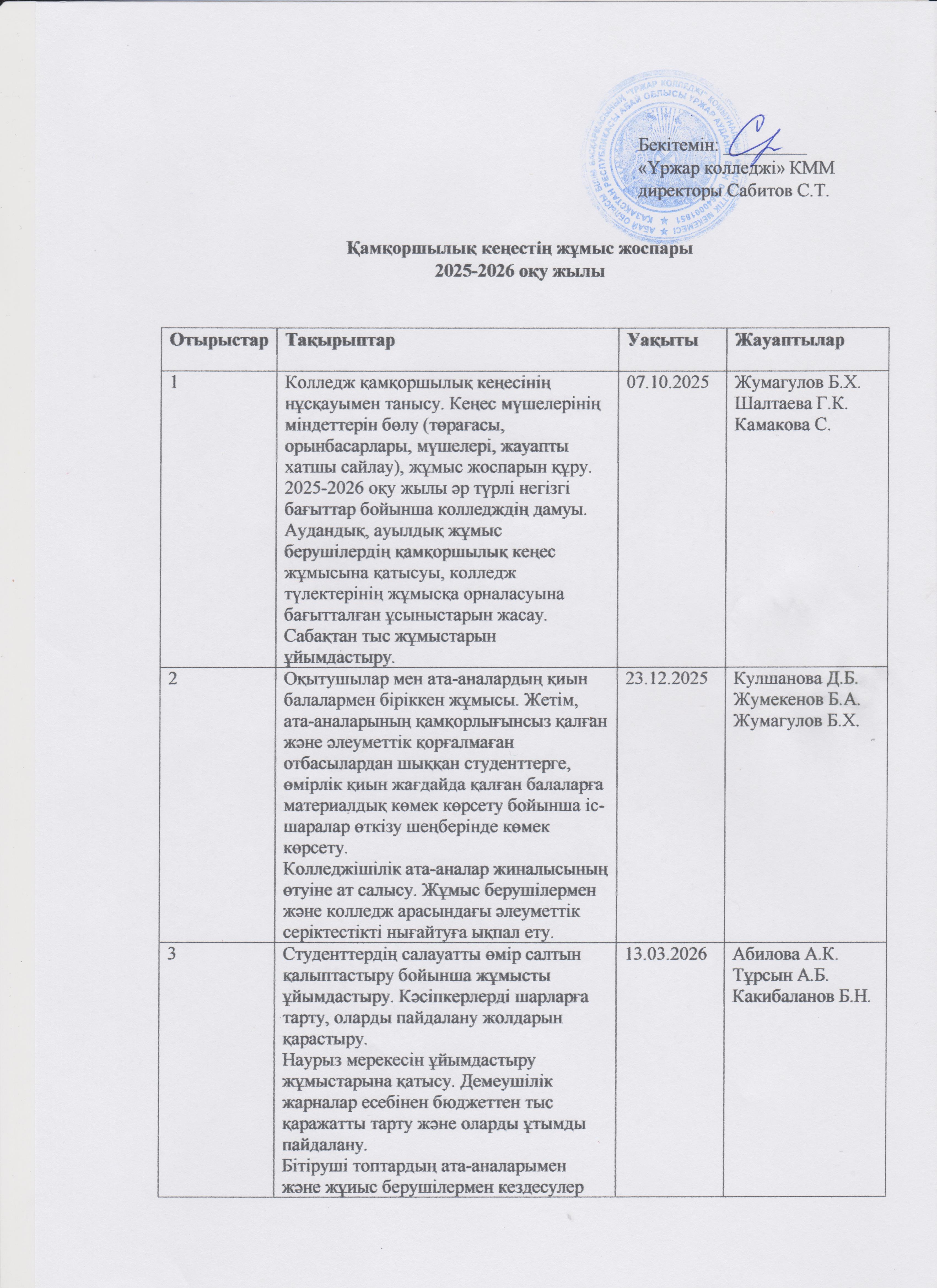 Қамқоршылық кеңестің жұмыс жоспары 2025 - 2026 оқу жылы