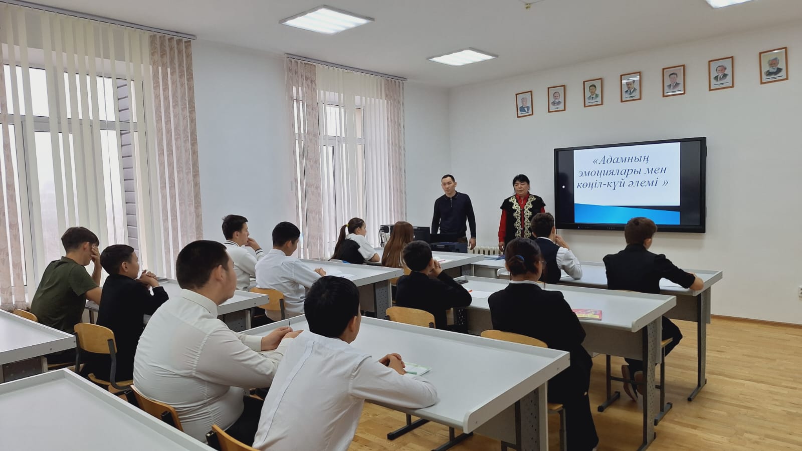 Апталық аясында І - ІІ курс студенттерімен «Адамның эмоциялары мен көңіл - күй әлемі» тақырыбында танымдық топ сағаттары өткізілді.