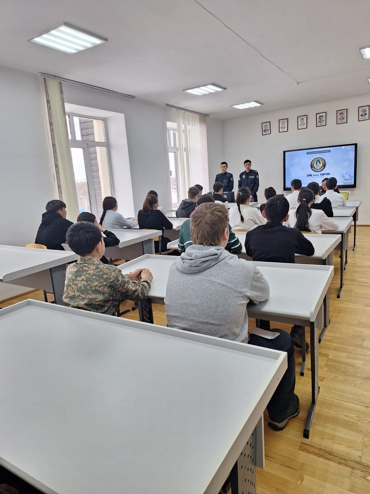«Үржар колледжі» КММ-де Үржар аудандық полиция бөлімінің қызметкерлерінің қатысуымен «Заң мен тәртіп» тақырыбында кездесу ұйымдастырылды