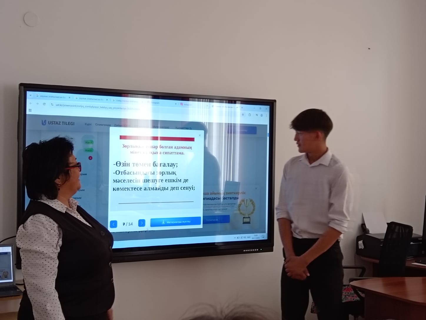 Қазақстан Республикасы Үкіметінің 2023 жылғы 31 тамыздағы № 748 қаулысымен бекітілген «Балаларды зорлық - зомбылықтан қорғау, суицидтің алдын - алу және олардың құқықтары мен саламаттығын қамтамасыз ету» жөніндегі 2023 - 2025 жылдарға арналған кешенді жоспарын іске асыру мақсатында Үржар колледжі" КММ - нің 3 - курс студенттері үшін «Адамның жеке шекарасын қорғаудың негізгі қағидалары» және «Зорлық - зомбылықтан қорғану: оның әдістерін және көмекке жүгіну қағидаларын білу»; 2 - курс студенттері үшін «Күмәнді манипуляцияларға ұшырамаудың жолдары» және «Қауіпсіз еңбек жағдайларын қалай қамтамасыз ету керек?»; 1 курс студенттері үшін «Кәмелетке толмаған бала заңды жауапкершілікке тартылуы мүмкін бе?», «Төтенше жағдайларда дұрыс әрекет ете білу» тақырыптарында қауіпсіздік сабақтары өткізілді.