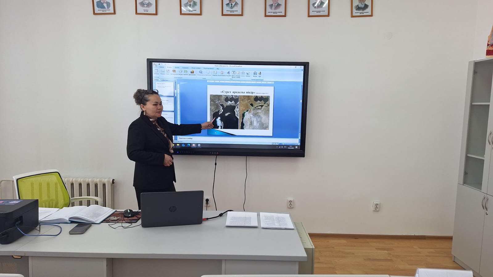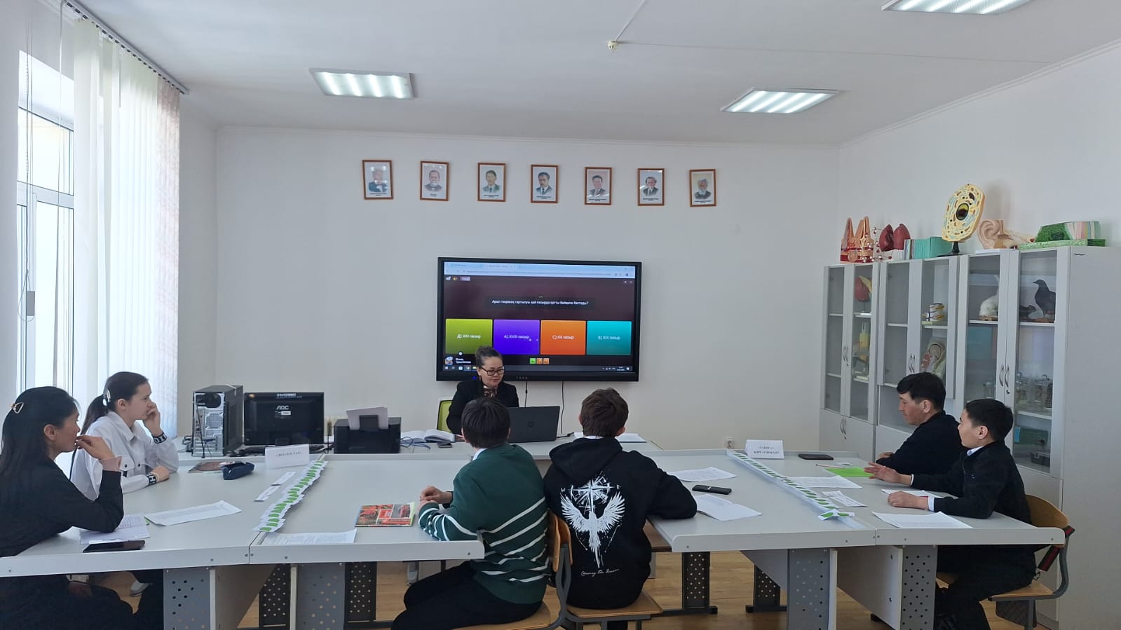 Әдістемелік жұмыс жоспарына сай өткізіліп жатқан жалпы білім беру пәндері онкүндігі аясында педагог-зерттеуші, қазақ тілі және қазақ әдебиеті пәні оқытушысы, ф.ғ.к. Турысбекова Жанар Кажимовна №14 «Тамақтандыруды ұйымдастыру» тобында «Әлемдік экология мәселелері. Арал теңізінің экологиясы. Айтыс» тақырыбында ашық сабақ өткізді. Сабақтың мақсаты- Әлемдік экологиялық мәселелер туралы білімдерін кеңейту. Арал теңізі проблемасының себеп-салдарын талдау. Айтыс арқылы білім алушылардың сөйлеу мәдениетін, дәлелді пікір айту қабілетін дамыту. Табиғатты қорғау құндылығын қалыптастыру. Quizizz, Wordwall, D-ID, Padlet сияқты жасанды интеллекті құралдары пайдаланылған ашық сабақ жоғары деңгейде өтіп, мақсатына жетті.